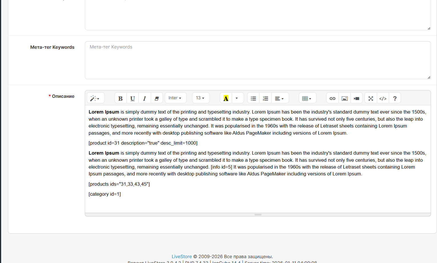 - Вставьте скопированный шот-код в любое текстовое поле (описание товара, статьи и т.д.)