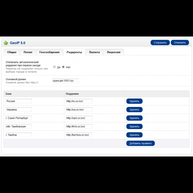 Редиректы - в зависимости от города модуль может перебрасывать пользователя на нужный поддомен и URL.