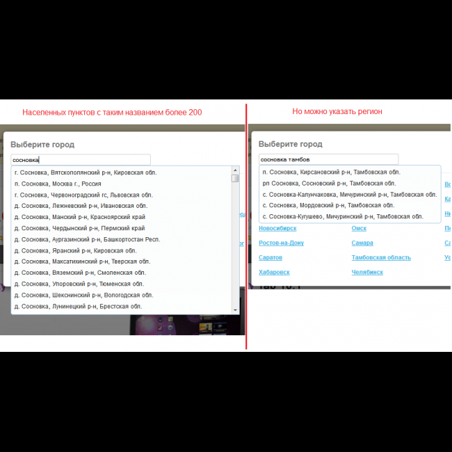 Автоматически заполняются поля Страна, Регион, Город, Индекс (не для всех) при регистрации и оформлении заказа, избавляя пользователя от ручного ввода.