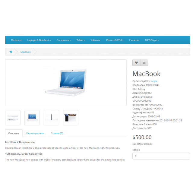 Стандартно Opencart выводит на странице товара лишь одно дополнительное поле model.
