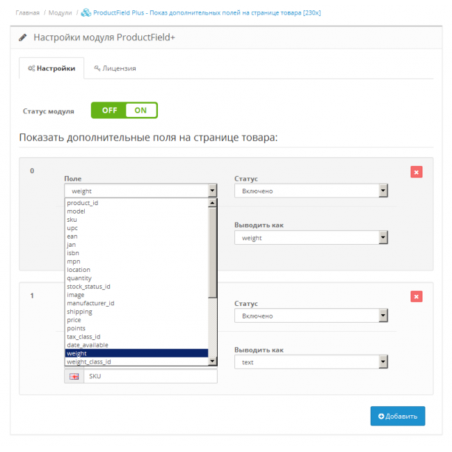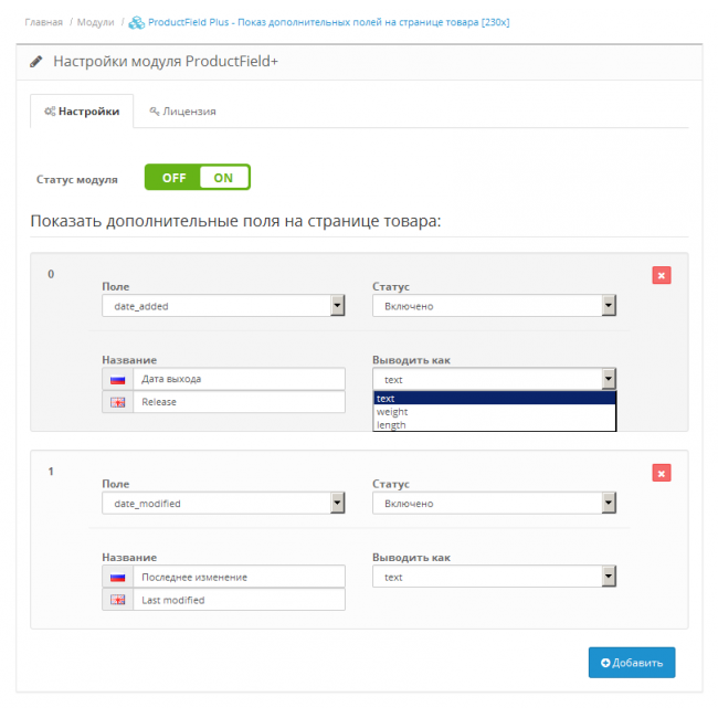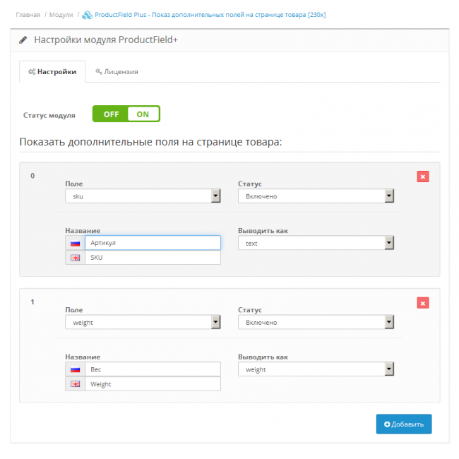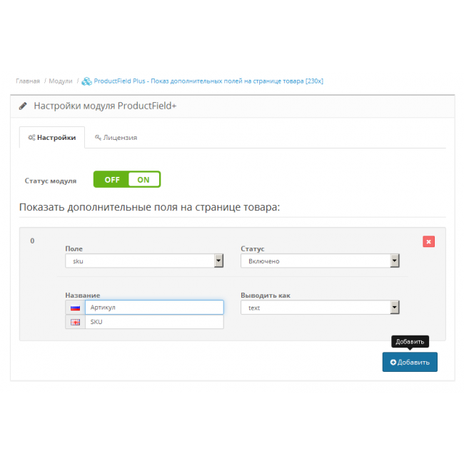 ProductField Plus - универсальный модуль для показа дополнительных полей на странице товара.