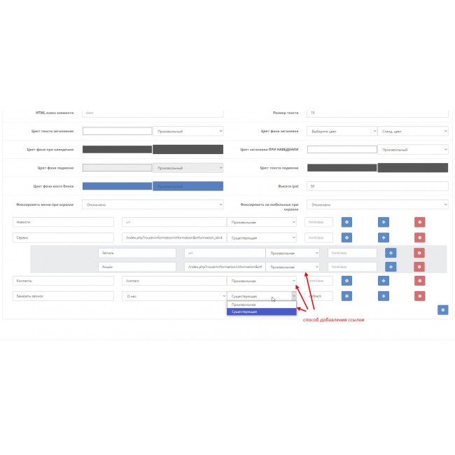 Удобный модуль для создания меню с произвольными ссылками и заголовками. При выборе "существующей" ссылки, появляется выбор из ранее созданных статей и страниц блога.
