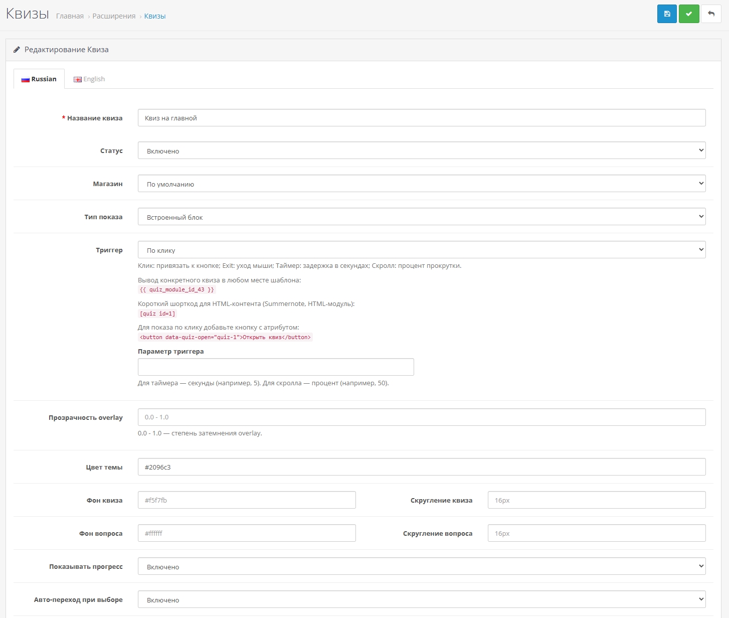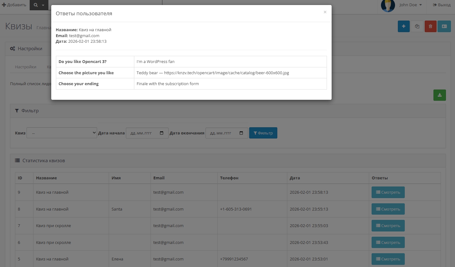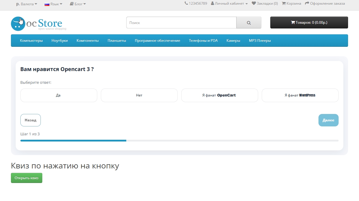 Quiz для OpenCart 3 / ocStore — Умные квизы для сбора заявок и подбора товаров