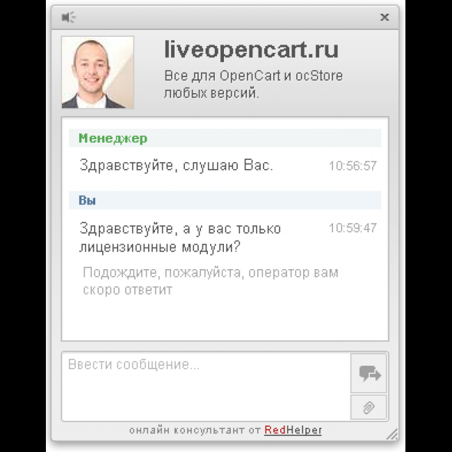Модуль "RedHelper" позволяет быстро установить Онлайн консультант