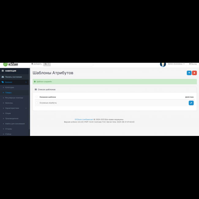 Создавайте, изменяйте и удаляйте шаблоны атрибутов через удобную страницу в админке.