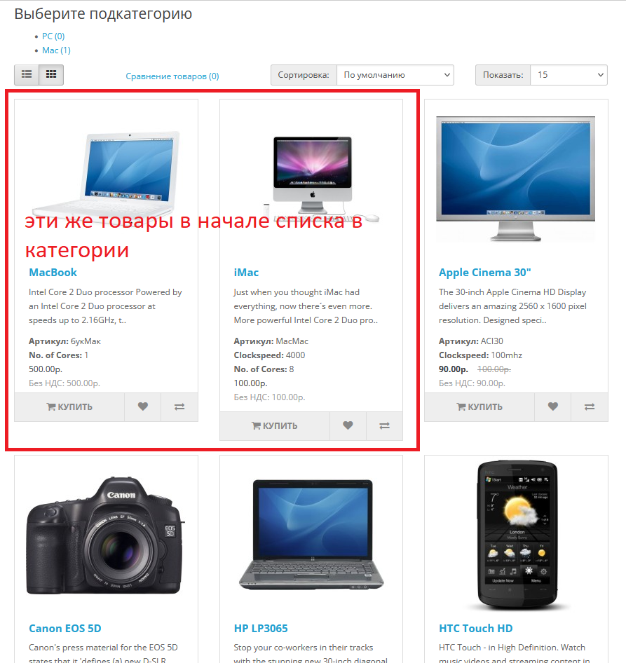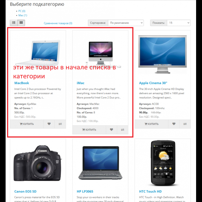 Таким образом, этот модуль позволит вам важные товары в каждой категории расположить на первой странице чтобы пользователи увидели их раньше.