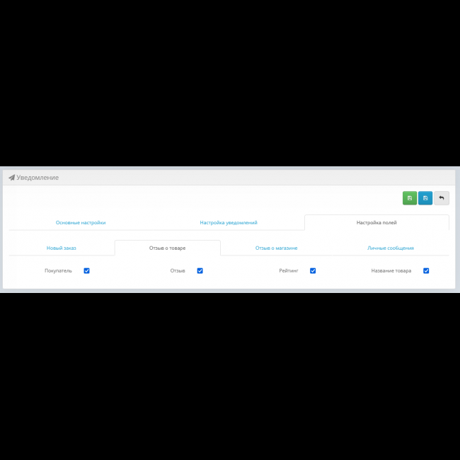 свой индивидуальный шаблон уведомления, а для остальных событий — отзывы, личные сообщения и уведомления о магазине — достаточно отметить галочками, какие поля включать в уведомление. В будущем планируется поддержка других популярных мессенджеров для ещё большего удобства. Все уведомления идут через личных ботов продавцов, которые им надо создать через оф. телеграм бота