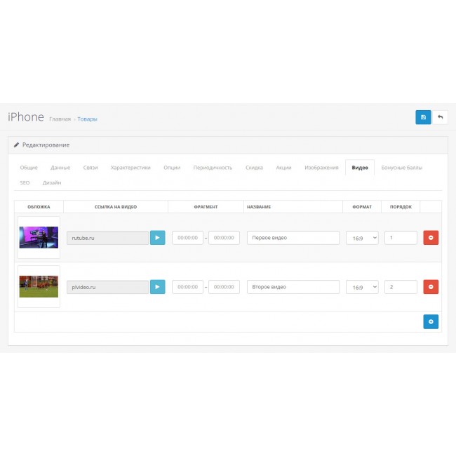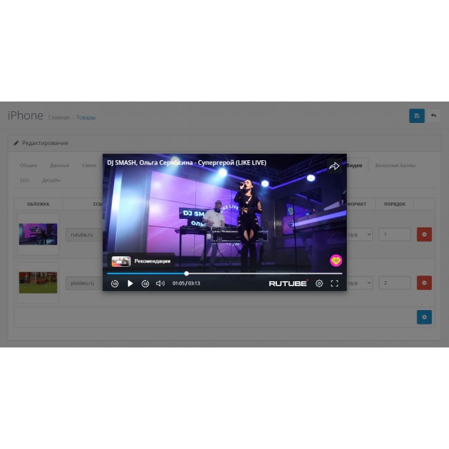 Модуль для интеграции видео в карточку товара из внешних источников.