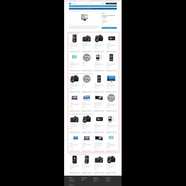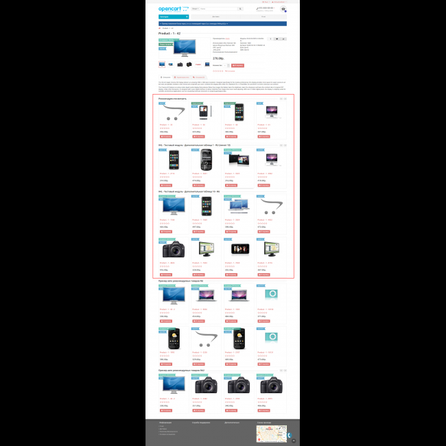Примечание: Адаптация отображения под вашу тему не входит в стоимость модуля. Отображение тестировалось для стандартной темы опенкарт.