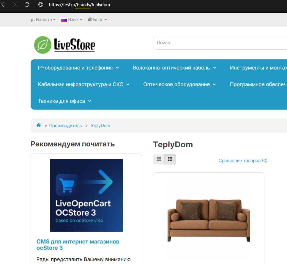 Модификатор добавляет в настройки OcStore / LiveStore возможность добавления префиксов (/product/ , /catalog/ , /brands/ ) префиксы для: товаров, категорий и производителей.