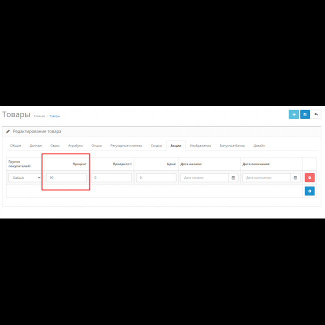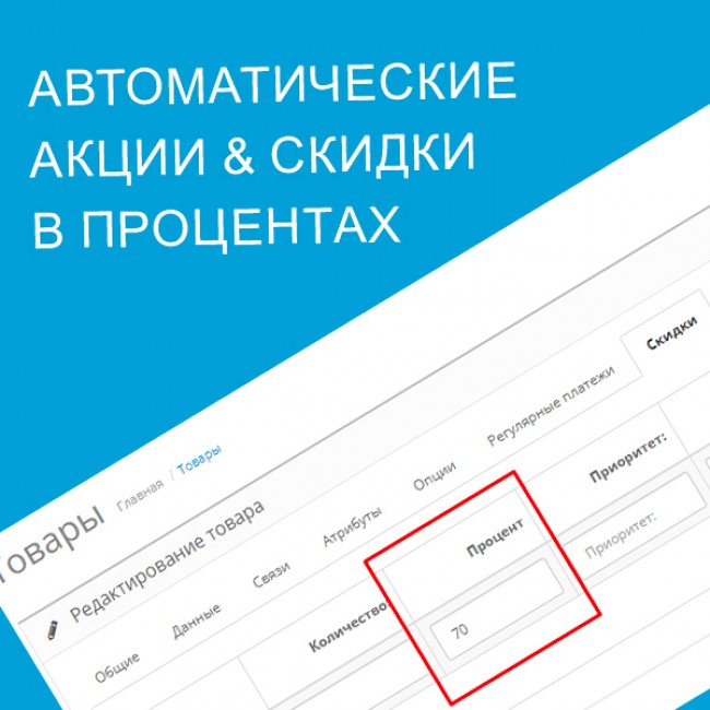 - Нет необходимости в ручном указании цен: С модулем нет необходимости в ручном указании цен скидок и акций - все рассчитывается автоматически на основе заданного процента.