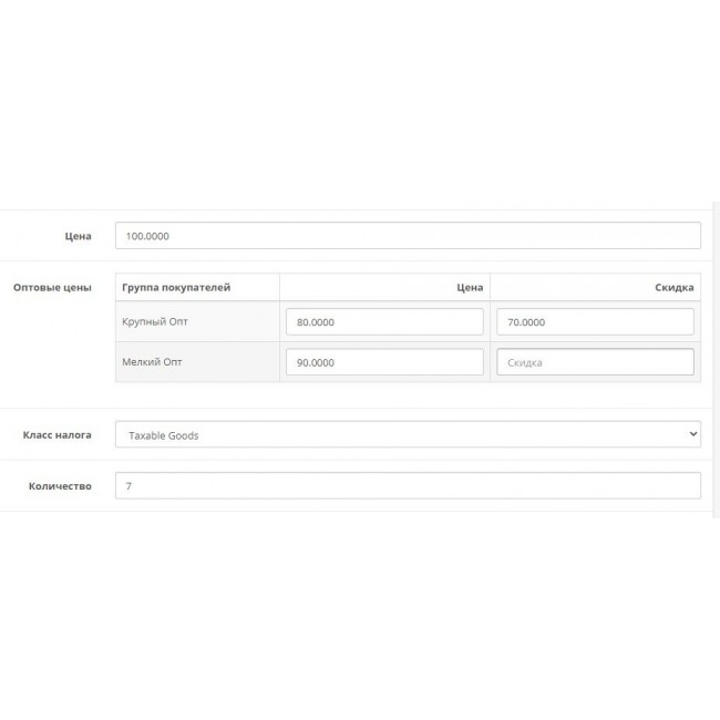 Для каждой группы клиентов можно указать свою стоимость товара и при необходимости скидку.