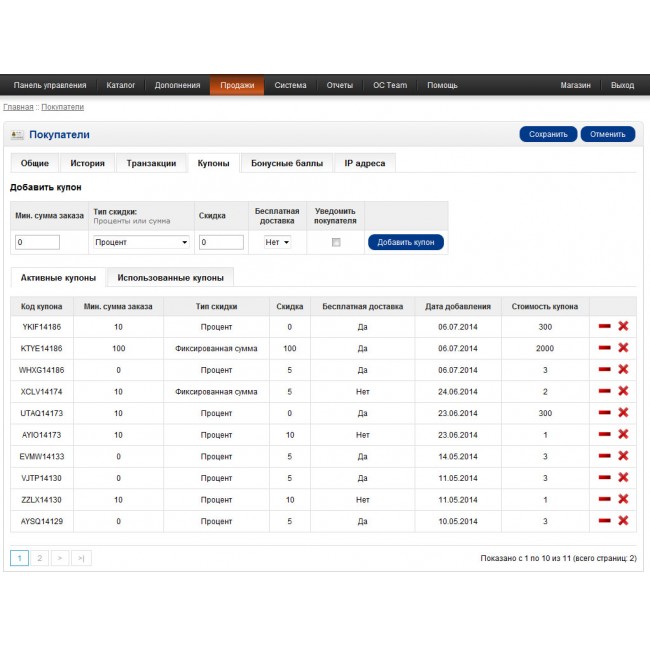 - Возможность выдачи персонального купона