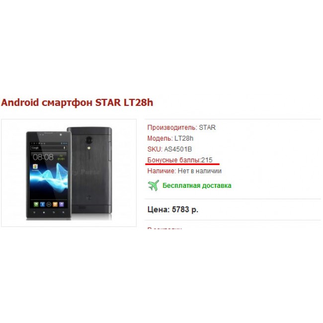- Если на товар установлена скидка, то бонусные баллы выводятся с учетом скидки