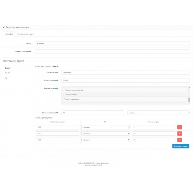 Модуль накопительной скидки для разных групп покупателей
