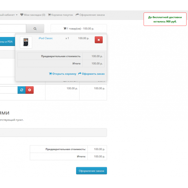 Модуль позволяет выводить надпись в корзине и/или в popup окне - До бесплатной доставки осталось...руб Настройки:Сумма товаров до которой модуль будет выводитсяВывод в корзине - вкл/выклВывод в popup окне - вкл/выкл