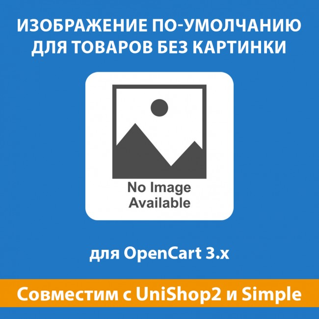 Модуль автоматически подставляет выбранную картинку для всех товаров, у которых отсутствует изображение. Работает во всех ключевых местах магазина, включая сторонние темы и модули.