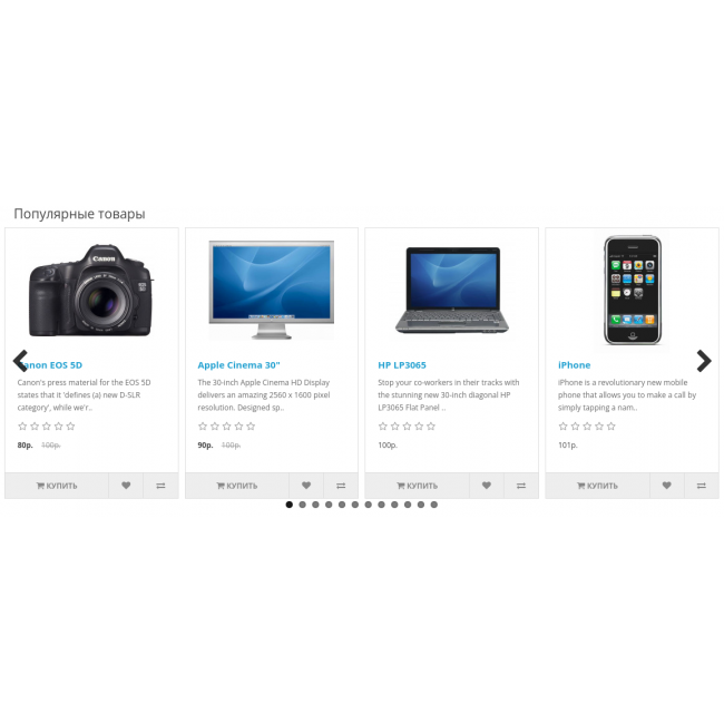 Модуль 2OC Popular - популярные товары. Настройка показа типа товаров: слайдер или сетка. Тонкая настройка где показывать модуль. Установка своих классов для каждого модуля через админку и т.д. и т.п.