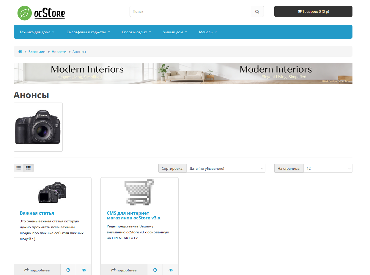 Поддержка шаблона Unishop 2, стандартного блога Ocstore, модуля