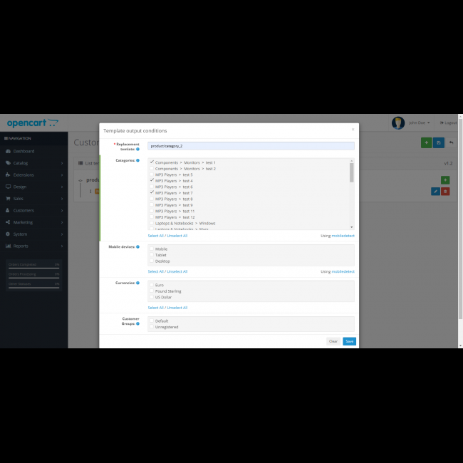 Можно комбинировать все эти параметры. Например, подменить шаблон extension/module/featured у модуля "Рекомендуемые товары" на extension/module/featured_apple, только когда модуль располагается на странице товаров производителя "Apple" при валюте USD.