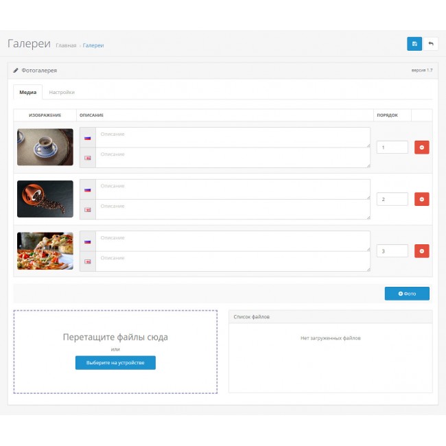 - Автоматическая пересортировка новых позиций и сортировка перетаскиванием