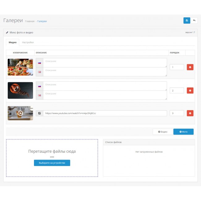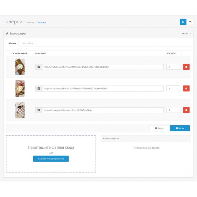 - Добавление видео с сервисов: Rutube, YouTube и Vimeo