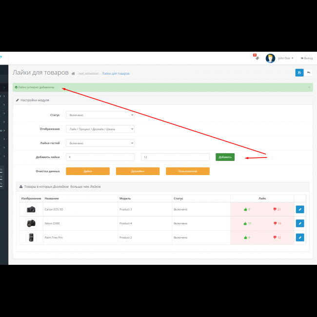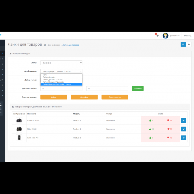 Отображение в модуле товаров где дизлайков больше чем лайков
