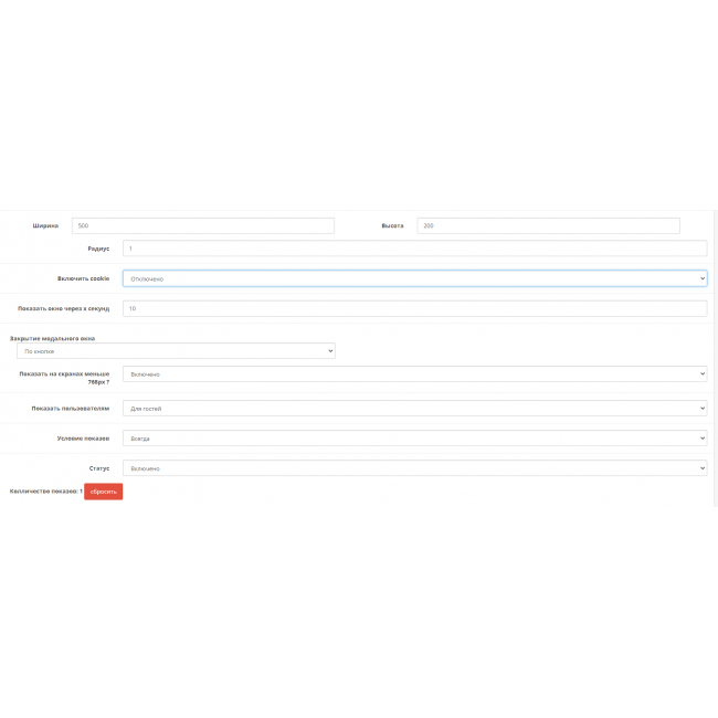 - с возможностью увидеть сколько раз модальное окно показалось пользователям