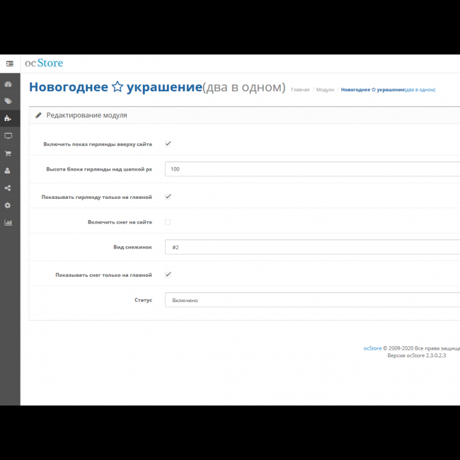 - Выбор в админке из четырех(new!) видов гирлянд для показа