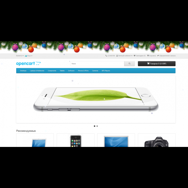 Модуль для оформления сайта в период новогодних праздников.В составе модуля: