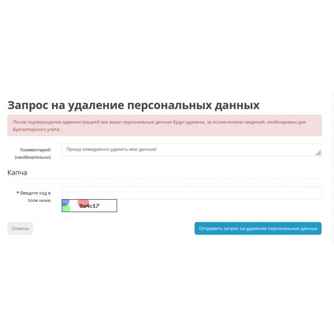 - Ссылка в личном кабинете пользователя для подачи запроса на удаление персональных данных.