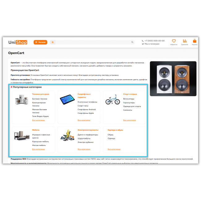 - описание блога OcStore, шаблона Unishop 2,