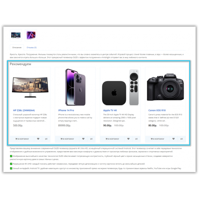 - описание товара,