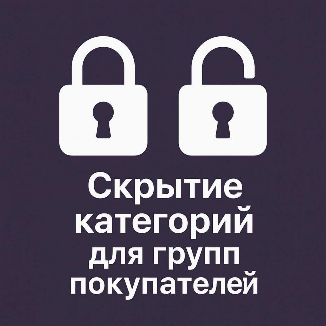 Модуль позволяет гибко управлять видимостью категорий и товаров на витрине магазина в зависимости от группы покупателя или(и) регистрации. Поддерживает два режима работы: скрытие при совпадении хотя бы одной категории или только если все категории скрыты. Настройки доступны через админку.