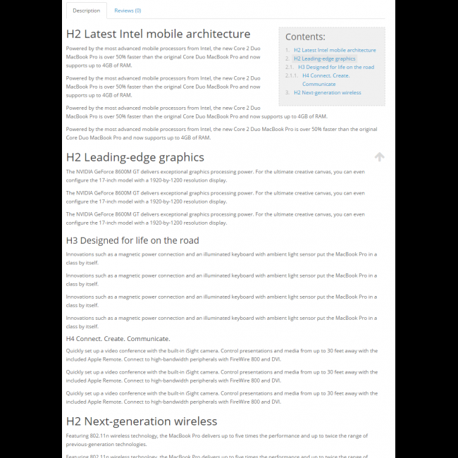 Модуль добавляет "Таблицу содержания" (TOC) на страницы описаний: