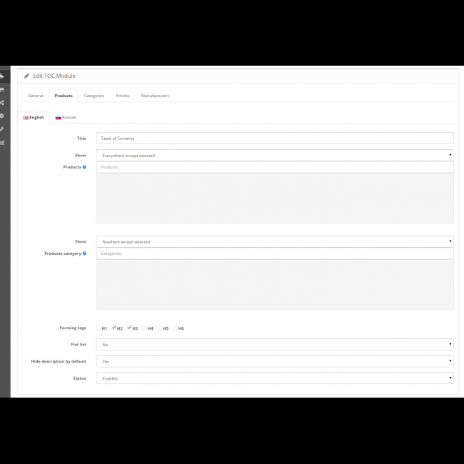 Для Opencart.cms и Opencart.pro (имеющие встроенный блог) имеется отдельная версия, которая добавляет "Содержание" на страницы: