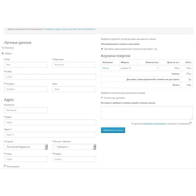 Оформление заказа на одной странице, без заполнения шагов. Для линейки OpenCart 2.3.X - 4.X