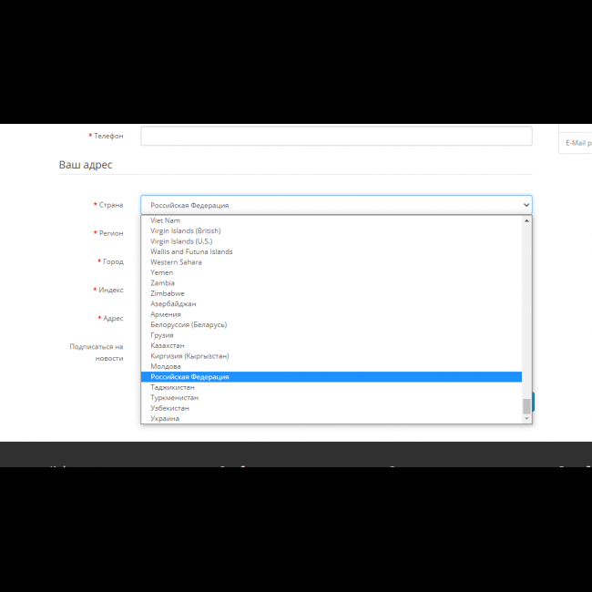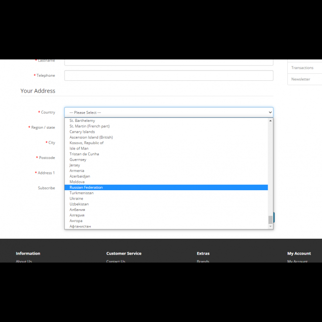 К примеру - страница регистрации - перевел некоторые страны для демо