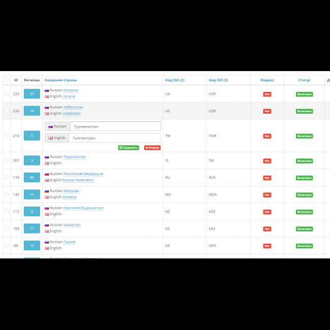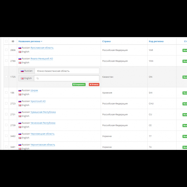 Была идея создания переводов по клику - но было отклонено - после проверки базы opencart + ocstore + opencart.pro - во всех сборках разные названия - где то добавлено - где то просто переименованы страны и регионы