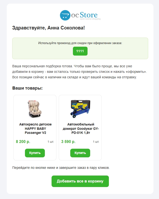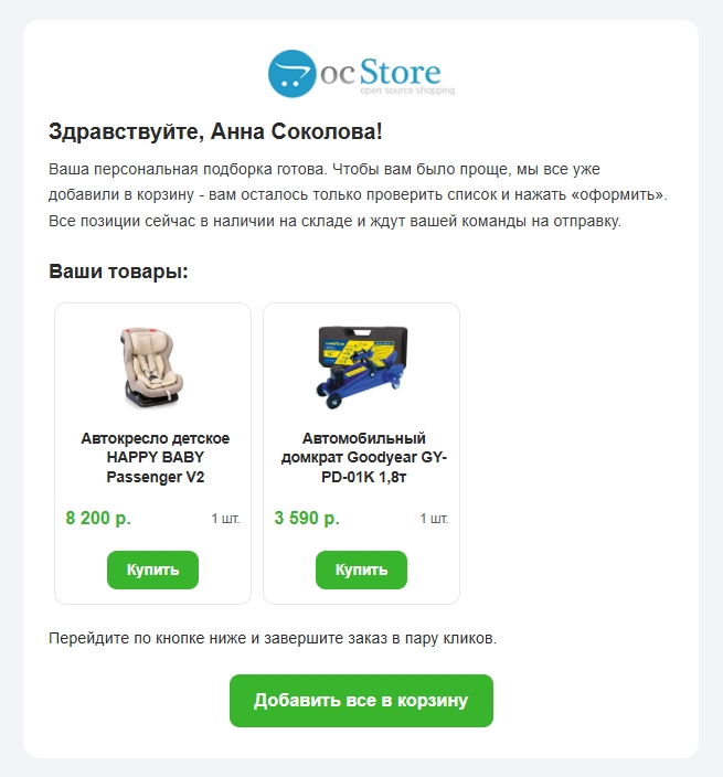 - Перезапись: Полностью заменяет текущие товары клиента вашим набором.