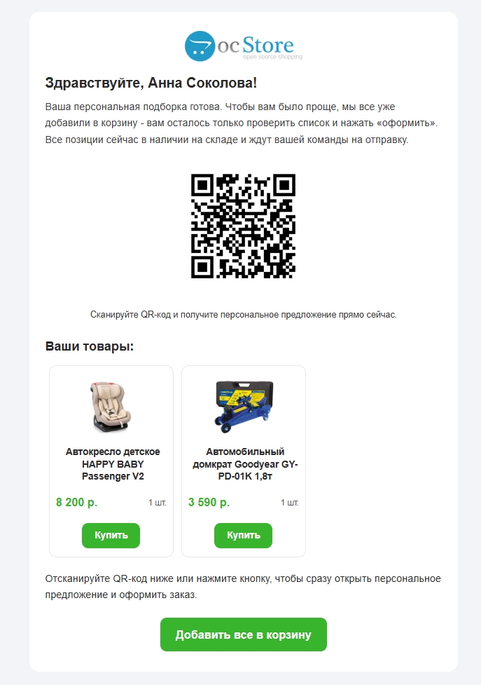 - Связка Online и Offline: Используйте QR-коды в розничном магазине. Клиент отсканировал код, и у него в смартфоне сразу открылась корзина со всеми позициями, которые он смотрел на витрине.