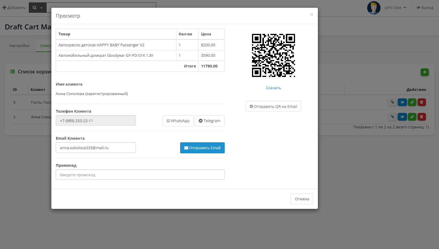 - Редактирование в реальном времени: Если клиент по телефону просит заменить одну позицию на другую — сделайте это в панели модуля, и корзина у пользователя обновится моментально.