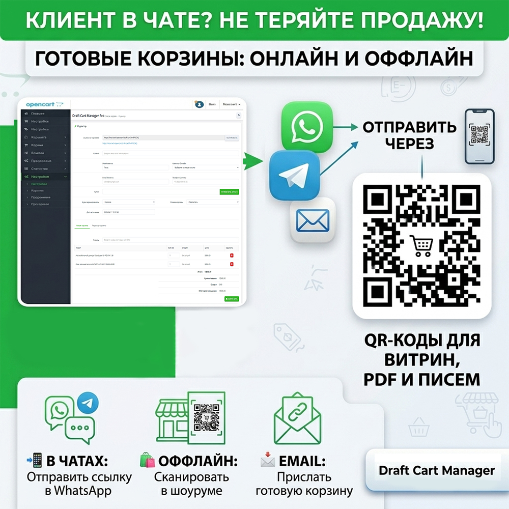 Draft Cart Manager Pro позволяет менеджеру самому сформировать идеальный набор товаров для клиента и отправить готовую ссылку для мгновенного оформления.