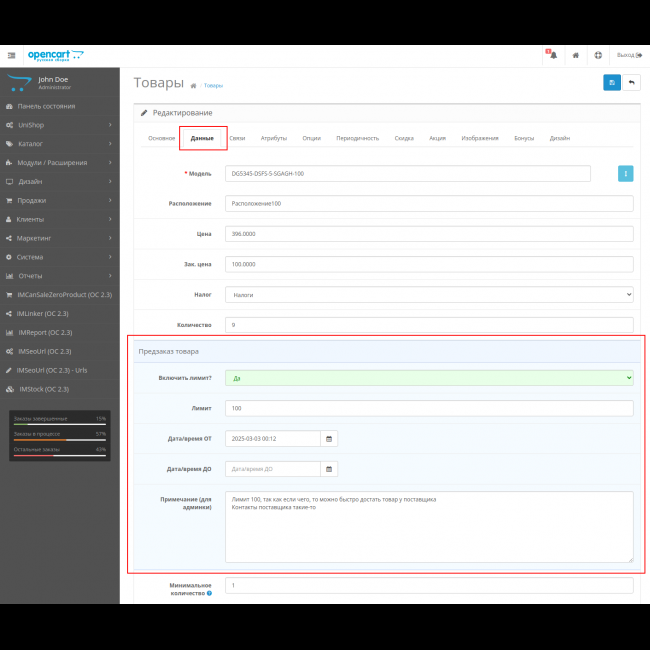 По умолчанию в OpenCart можно либо полностью включить предзаказ товара, либо полностью его отключить. Однако это не очень удобно в тех случаях, когда вам нужно придержать отдельную часть товара или наоборот продать больше, чем в наличии. Приходится вручную корректировать количество товара или иным образом ухищряться.