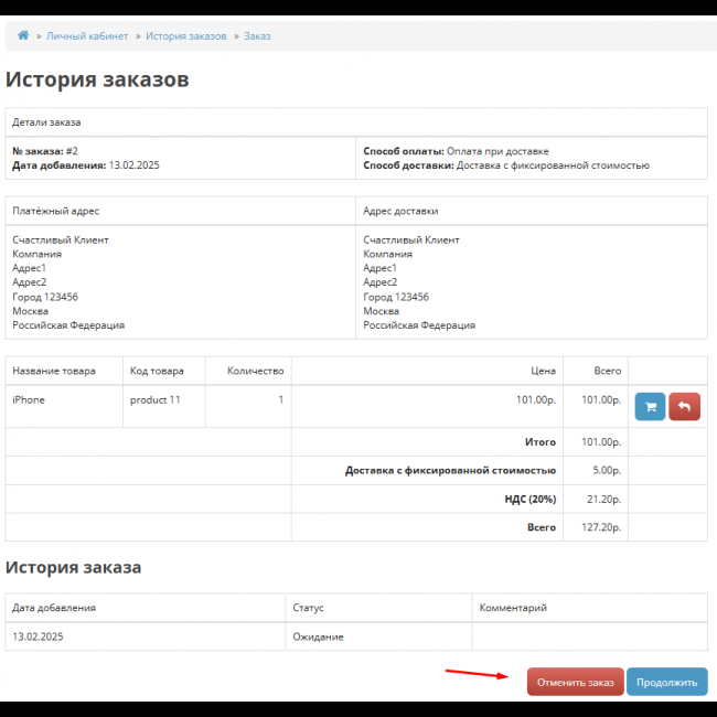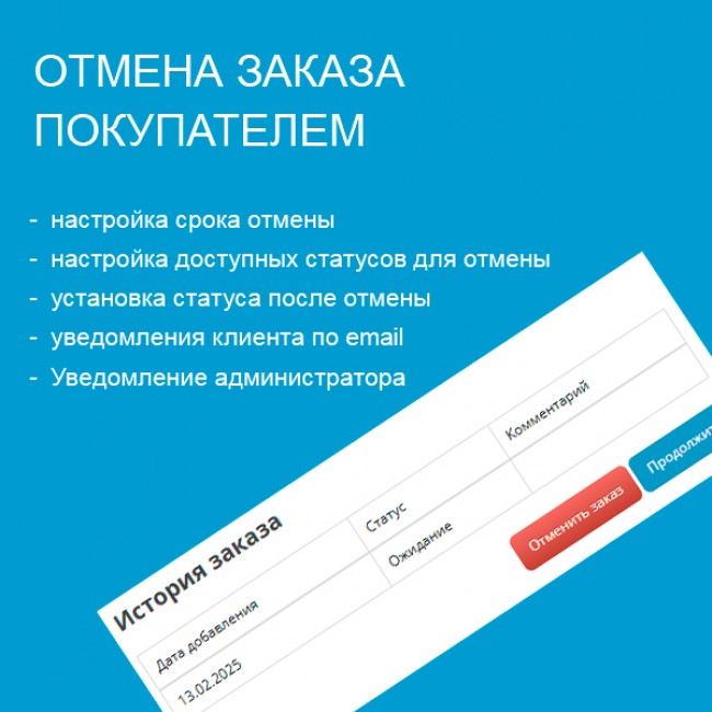 Модуль "Отмена заказа покупателем" для OpenCart