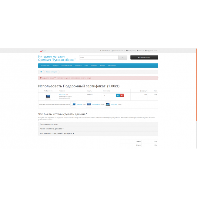 - Отображение товаров заменителей не только в карточке товара, но и в корзине, если вдруг покупатель не заметил, что положил в корзину отсутствующий на складе товар