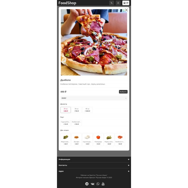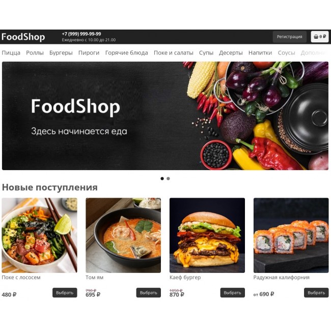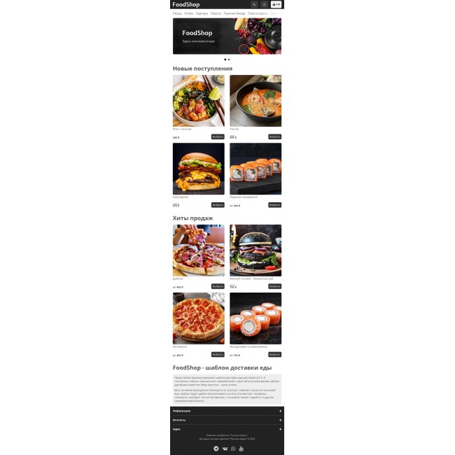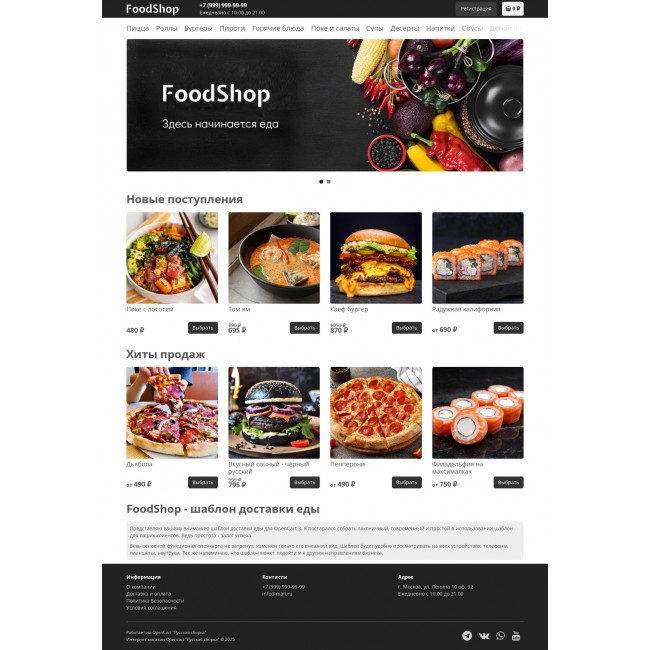 Представляю вашему вниманию шаблон доставки еды для OpenCart 3. Лаконичный, строгий и современный дизайн.