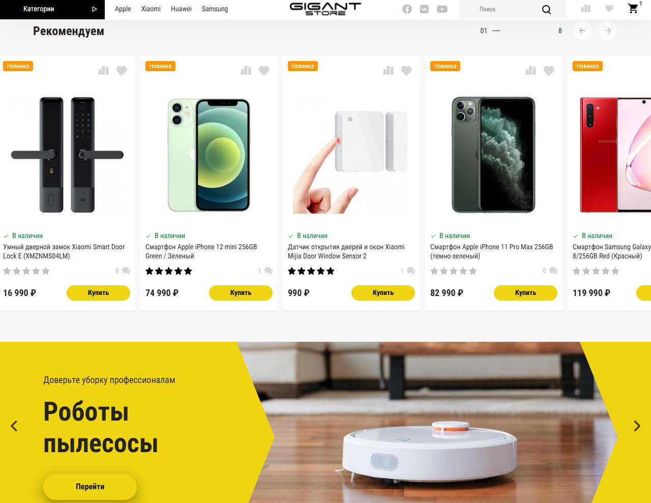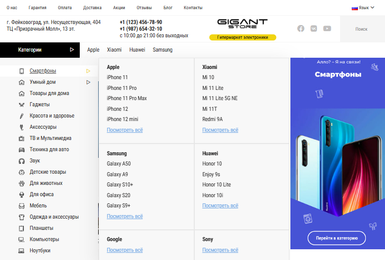 GigantStore - современный адаптивный шаблон для интернет-магазинов на OpenCart 3.x. Мощный функционал, продуманный дизайн и гибкие настройки позволяют запустить профессиональный магазин любой тематики: электроника, одежда, мебель, косметика, продукты питания и многое другое.