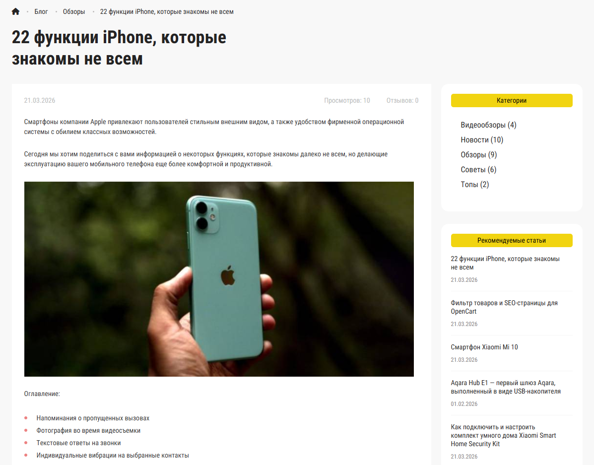 - Блог - полноценный модуль блога (LiveStoreBlog) в комплекте: статьи с галереей изображений, категории, комментарии, связанные товары. Шаблоны блога полностью стилизованы под тему;