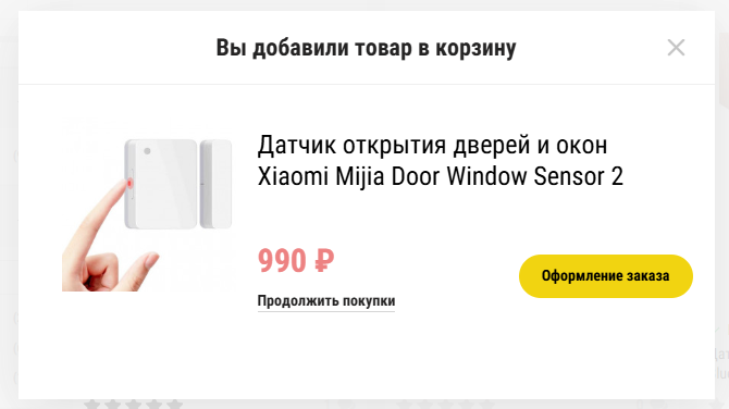 - Всплывающая корзина - при добавлении товара в корзину появляется попап с содержимым корзины и кнопкой перехода к оформлению;
